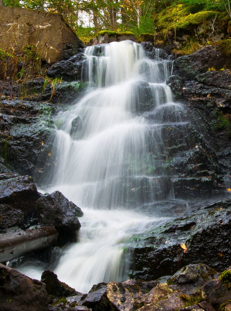 Det er høst, og vannet flommer friskt mange steder i Marka. Her er vi ved demningen i sydenden av Triungsvann, der assosiasjoner til dusj var fremtredende.