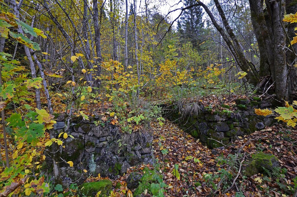 Kjaglienga var det nordligste stedet på dagens rundvandring i Kjaglidalen. Denne ruinen nedenfor og rett før dagens bebyggelse på Kjaglienga har vi sett mange ganger, men ikke visst hva det er. Harald Kolstad kunne fortelle at det er restene av sommerfjøset her.