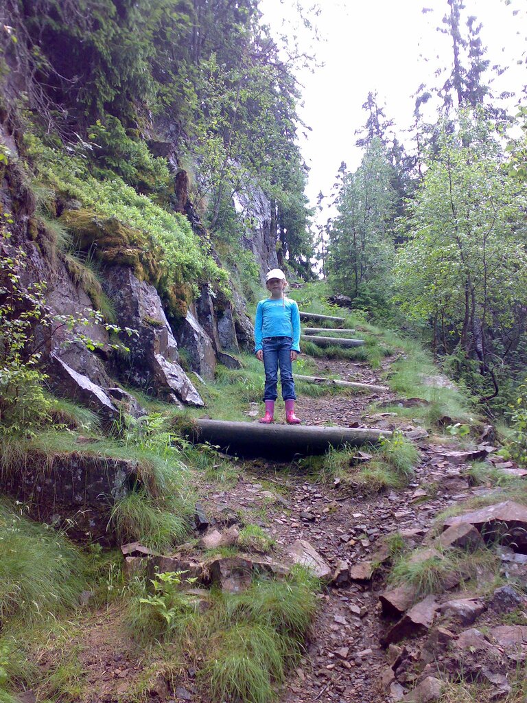 Holmenkollåsens nordvestside er preget av bratte skrenter og trange bekkefar. Her den trappelagte stien mellom BUL-hytta og Lillevann.