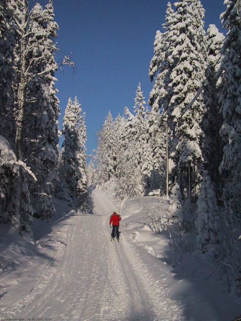 Bildet ar tatt i lysløypa fra Tonsenhagen mot Gruvelia (løype 212), øst for Årvollåsen.