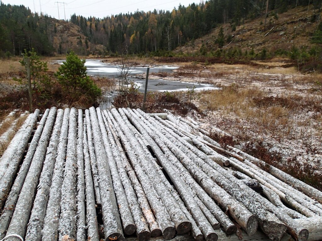Litt til, så blir det skiløype her på Bjørndalsmyra ved Skytta i Nittedal. Myra er i ferd med å fryse til. Et tynt lag med snø legger seg på isen på tjernet. Bildet er tatt på Bjørndalsmyra, langs løypa fra Skytta til Sørskogen.