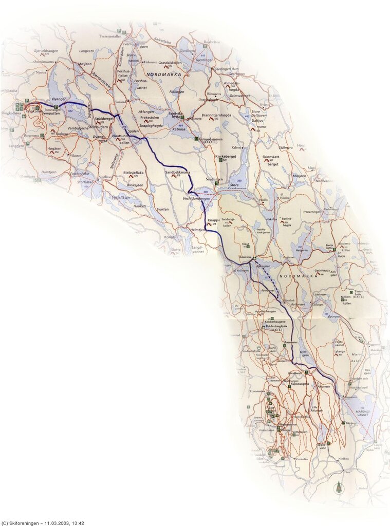 Løypekart helgens tur gjennom Nordmarka 15.03-16.03 2003